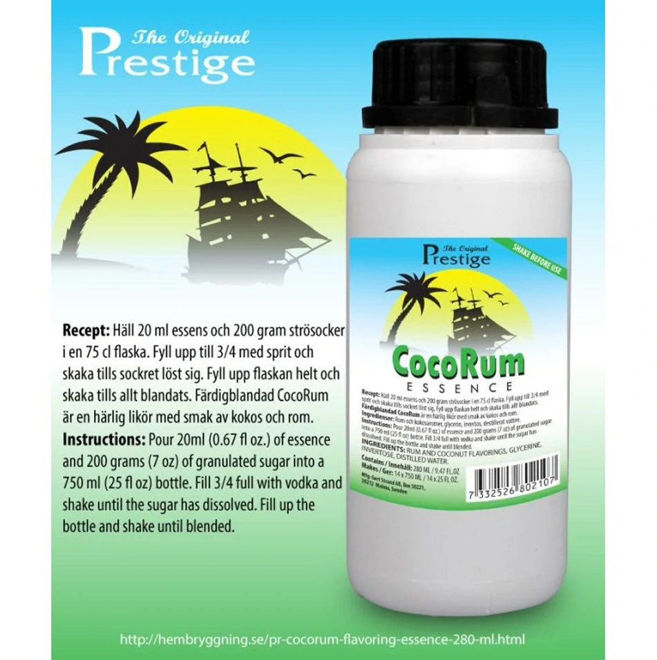 CocoRum je esence, která přináší autentickou chuť kokosového rumu Malibu přímo do vašeho domova. Je ideální pro milovníky koktejlů a míchaných drinků, ale skvěle chutná i samotná. S touto esencí snadno obohatíte své nápoje o exotickou chuť kokosu, což ji činí perfektní ingrediencí pro letní párty nebo oslavy.