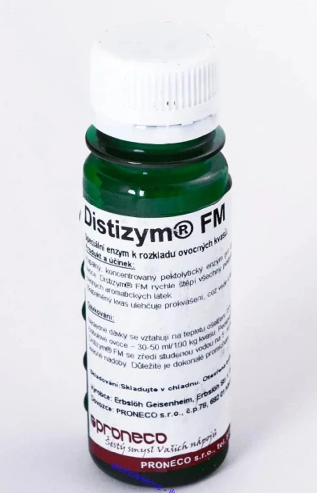 Distizym® FM je pektolytický enzym, který efektivně rozkládá kvas z bobulového a peckového ovoce. Jeho hlavní výhodou je rychlé odbourání pektinových látek, což zlepšuje čerpatelnost kvasu a zvyšuje obsah alkoholu ve vašich destilátech. Tento enzym je ideální pro domácí výrobce vína a destilátů, kteří chtějí dosáhnout lepších výsledků a maximálně využít potenciál svých surovin.