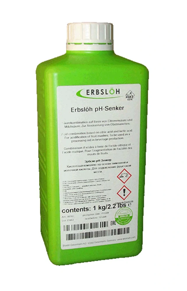 Erbslöh pH-Senker je kvalitní kapalný přípravek určený k úpravě pH ovocných kvasů. Jeho vyvážená kombinace citrónových a mléčných kyselin efektivně chrání kvas před bakteriálními infekcemi, čímž zajišťuje vyšší jakost a výtěžnost vašich destilátů. Snížení pH pomocí pH-Senkeru pozitivně ovlivňuje aktivitu ušlechtilých kvasinek, což vede k čistému a kvalitnímu procesu kvašení.