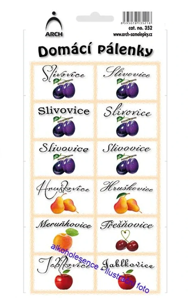 Etikety na lahve 12 ks mix ovoce pro domácí pálenkuSkladem > 5 ks25 Kč/ ks