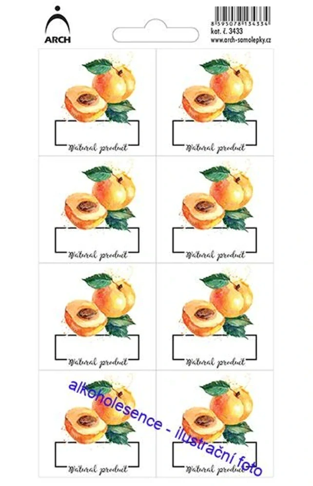 Meruňky etikety 8 vodoodolných na domácí zavařeniny a marmeládySkladem 1 ks20 Kč/ ks