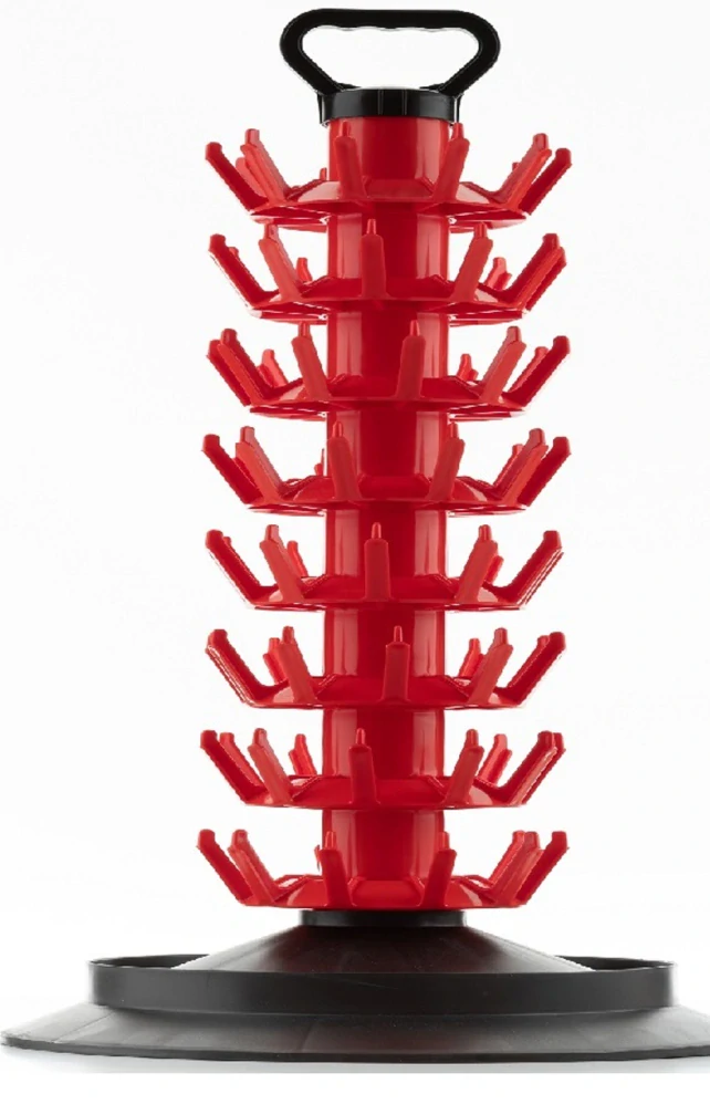 Plastový odkapávač na lahve s rukojetí je nezbytným nástrojem pro domácí vináře, pivovarníky a výrobce destilátů. Jeho modulární konstrukce umožňuje snadné přizpůsobení kapacity podle aktuálních potřeb, což usnadňuje přípravu lahví před plněním. Odkapávač efektivně odvádí přebytečnou vodu, čímž zajišťuje hygienické a čisté lahvování.
