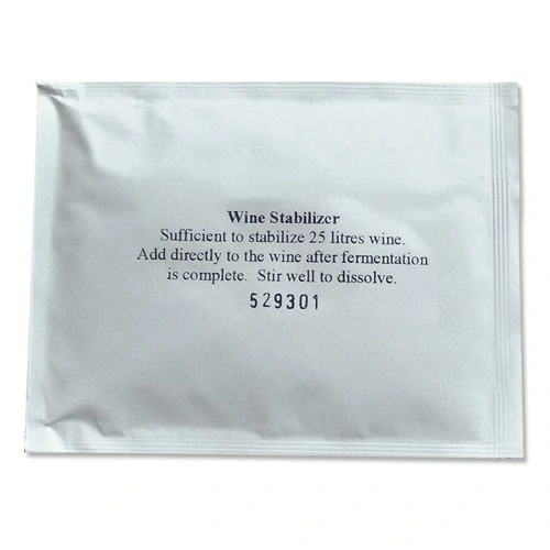 Použití: Po ukončení kvasného procesu přidejte do 25 litrů vína, medoviny nebo ovocného kvasu 1 balení stabilizátoru a důkladně promíchejte pro rovnoměrnou distribuci.